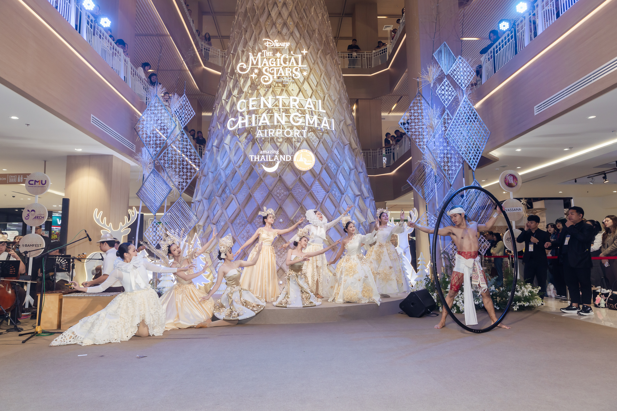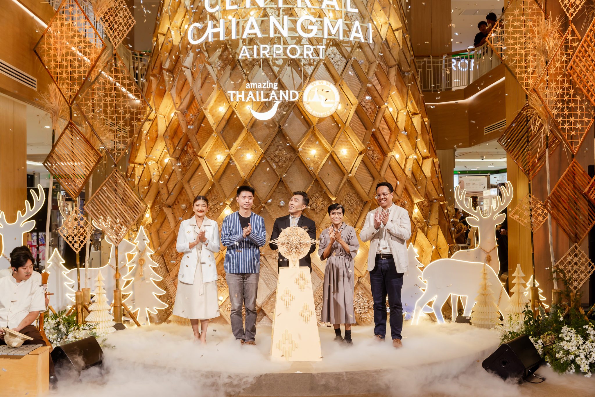 ศูนย์การค้าเซ็นทรัล เชียงใหม่ แอร์พอร์ต ร่วมกับคณะสถาปัตยกรรมศาสตร์ มหาวิทยาลัยเชียงใหม่ และ VASSANA แบรนด์ที่รังสรรค์งานสานอย่างสร้างสรรค์ ร่วมกันเนรมิตต้นคริสต์มาสคราฟท์จากไม้ไผ่พืชเศรษฐกิจและงานจักสาน สูงกว่า 15 เมตร แรงบัลดาลใจจากพระราชกรณียกิจสมเด็จพระนางเจ้าสิริกิติ์ พระบรมราชินีนาถ พระบรมราชชนนีพันปีหลวง เรื่องการส่งเสริมอาชีพศิลปหัตถกรรมงานจักสานไม้ไผ่ โดยต้นคริสต์มาสคราฟท์ครั้งนี้นำเสนอผ่านงานสานแบบล้านนา สัญลักษณ์แห่งการเปลี่ยนแปลงและความผูกพันธ์ ถ่ายทอดความประณีตของช่างฝีมือท้องถิ่นในทุกเส้นสาย ต้นคริสต์มาสต้นนี้จึงไม่เพียงเป็นสัญลักษณ์แห่งการสืบสาน รักษา ต่อยอด แต่ยังเป็นการน้อมนำแนวพระราชดำริมาเป็นแนวทางในการขับเคลื่อนเศรษฐกิจ และประกาศคุณค่าของภูมิปัญญาท้องถิ่นสู่เวทีโลกอย่างสง่างาม