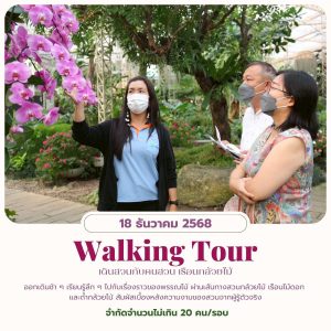 • กิจกรรม Walking Tour เดินชมสวนกับผู้ดูแลสวนเปิดมุมมองใหม่ในการชมสวน พร้อมฟังเรื่องราวพรรณไม้จากผู้เชี่ยวชาญผ่านเส้นทางสวนกล้วยไม้ เรือนไม้ดอก และถ้ำกล้วยไม้.